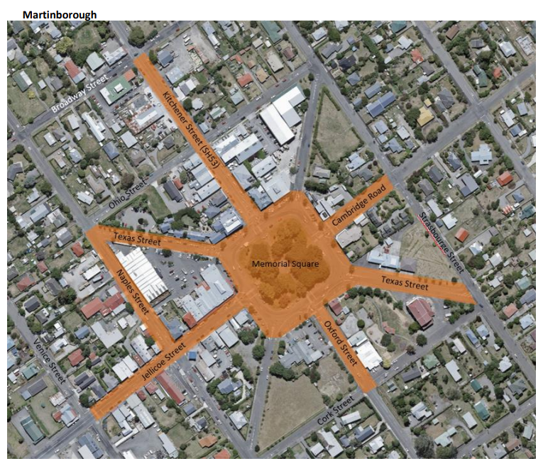 Above: Roads affected by the restricted roadworks in South Wairarapa’s three towns from 13 December 2025 to 5 January 2026. Only essential or emergency works will be considered during this time.