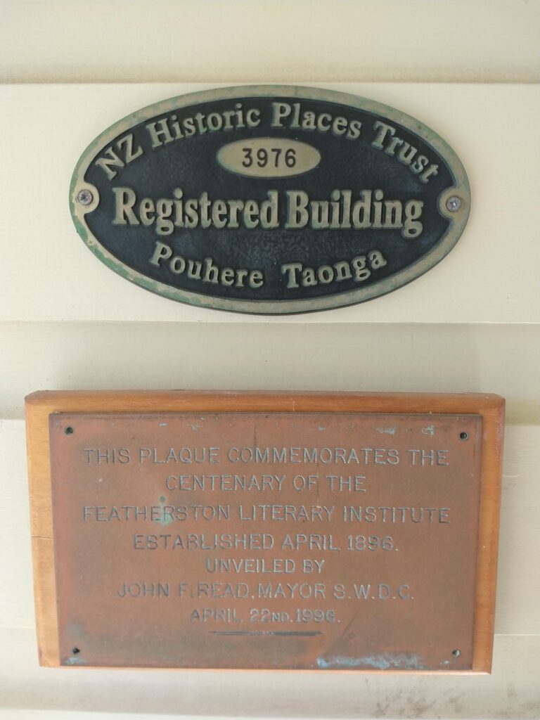 In recognition of its significance, Featherston Library was listed as a Historic Place (Category 2) in 1983 by Heritage New Zealand, Pouhere Taonga. More history is here: https://www.heritage.org.nz/list-details/3976/Library+Building