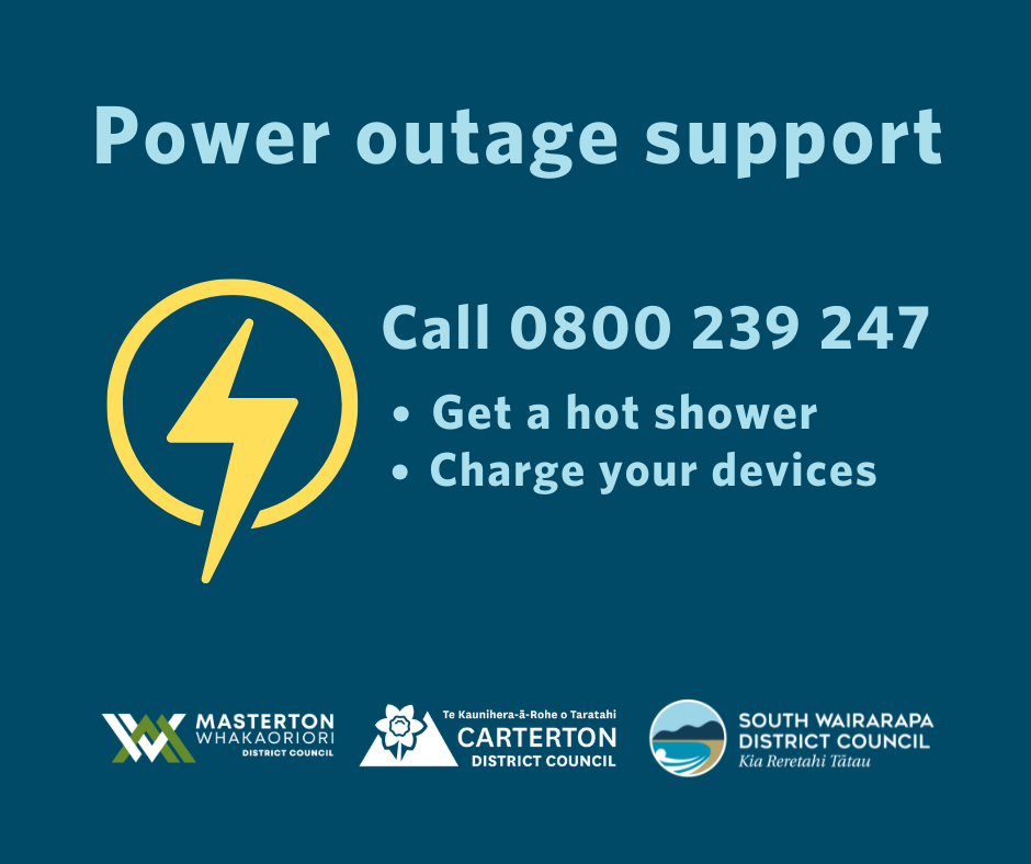 If you haven’t had power since Tuesday and can’t access power through friends or whānau, please contact the Wairarapa Civil Defence Call Centre. They can advise you on where to go for: