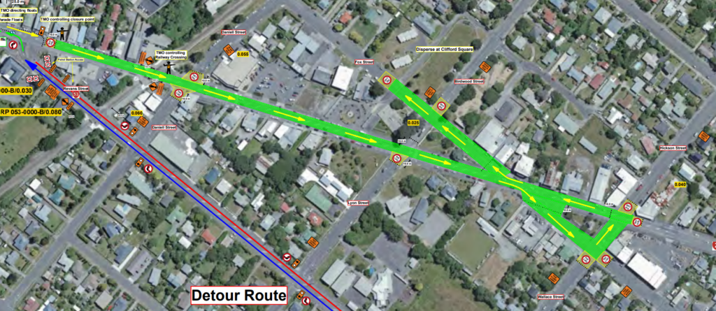 - Southbound traffic will detour via Waite St → Revans St → SH2