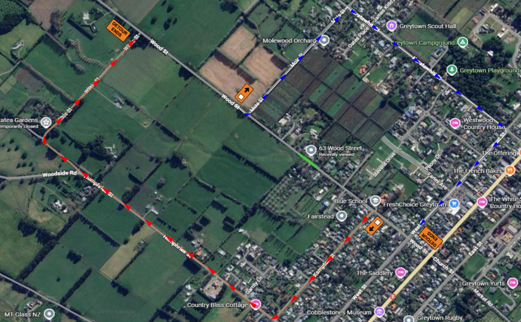 A road closure will be in place on Wood Street in Greytown on Tuesday 27 January from 9am to 3pm for water leak repairs to be undertaken by Wellington Water.