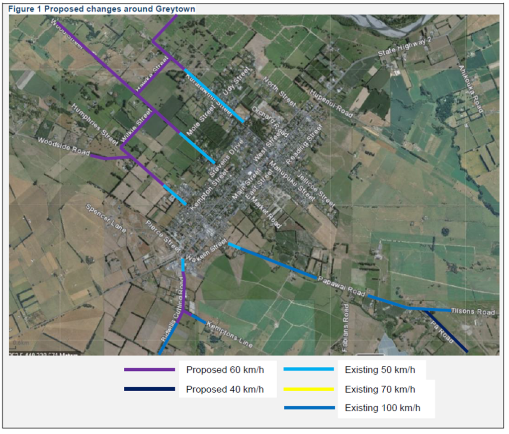 | Greytown-Woodside Road between Humphries Street Road and 350m north of Humphries Street | 100 | 60 |
