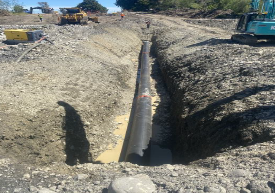 The project began on 1 December 2025, following a mana whenua karakia the night before for the project and workers as they implement a more resilient water supply for the community in Paetumokai (Featherston). The project is being delivered to schedule with the first trench being installed on the south side of the river and the pipe sleeve inserted 4m below the current riverbed level. The trench is currently being back filled ahead of the next tranche of work in 2026. The Tauwharenīkau River will be put back in place over the Christmas break.
